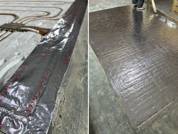 綺麗に剥がして、新しい床暖房用のアルミテープを貼り直し