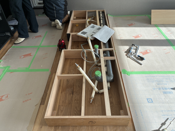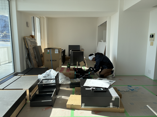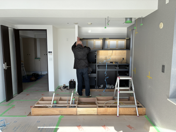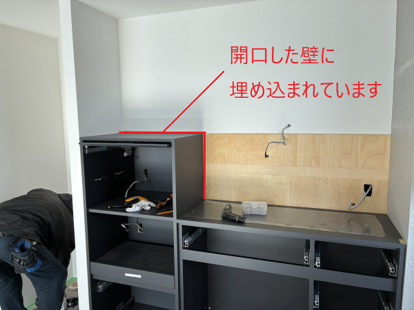 奥行きのあるオーブンレンジも隠して収納出来るよう